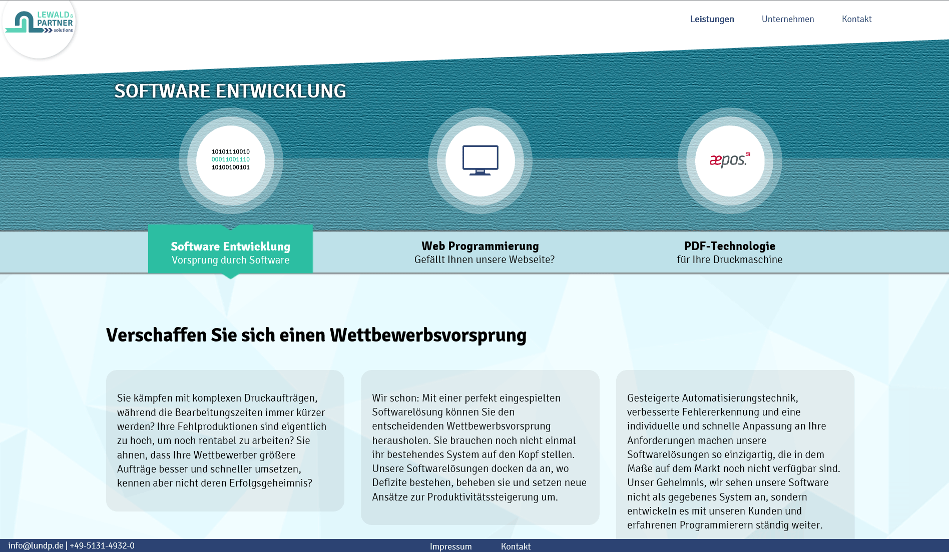Die Webseite ist völlig neu aufgesetzt unter der Verwendung des bislang hierzulange recht unbekannten, dafür sehr datensicheren und autarken Content Management Systems umbraco. Viel Wert wurde auf Responsive Webdesign gelegt, so dass die L&P Homepage auch auf mobilen Endgeräten optimal nutzbar ist. Inhaltlich stehen dem Interessierten umfassende Informationen zu den verschiedenen Softwarelösungen und der Produktlinie aepos. zur Verfügung. Lewald & Partner als inhabergeführtes Unternehmen und Servicepartner für Softwarelösungen rückt mehr in den Mittelpunkt.